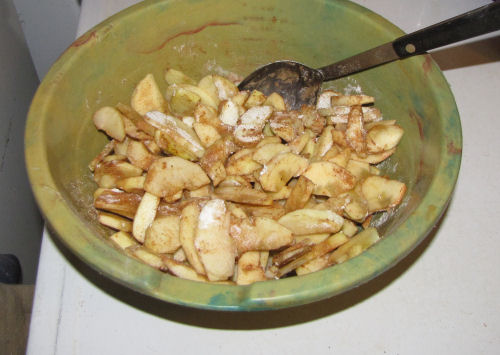 9x13 inch pan bowls spoons, scraper, etc sharp knife This apple crisp is delicious, having all the goodness of apple pie without the calories of the pie crust. It's very basic, and you probably have all the ingredients on hand if you bake regularly. I made the mistake of using oats that were not "quick" the first time I made it. They do not soften, despite the long baking time, and the topping was very crunchy. I didn't mind, but hubby did not like that. You could add some nutmeg too, if you like.